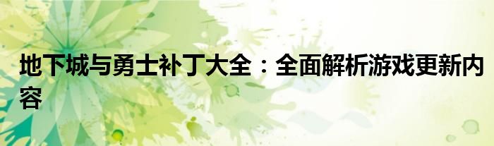 本文将为大家带来关于《地下城与勇士》游戏补丁的全方位解析,为广大玩家提供最新的游戏更新信息。我们将深入讨论各个补丁所包含的内容、作用及更新细节,以便玩家更好地理解和应用这些补丁,提升游戏体验。