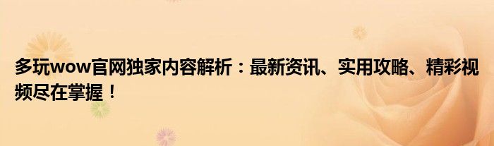 多玩wow官网独家内容解析:最新资讯、实用攻略、精彩视频尽在掌握!