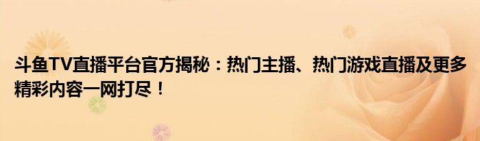 斗鱼TV直播平台官方揭秘:热门主播、热门游戏直播及更多精彩内容一网打尽!