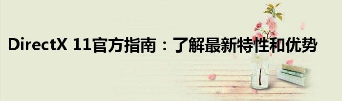 欢迎来到DirectX 11官方指南!在这里,我们将向您介绍DirectX 11的最新特性和优势,帮助您了解这个强大的图形和音频处理API。