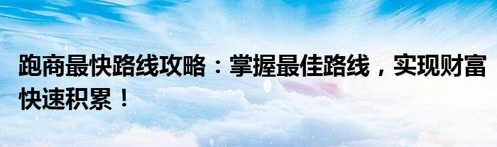 跑商是一种通过贸易赚取利润的游戏或经济活动。掌握最快的跑商路线对于成功积累财富至关重要。本文将带领读者了解如何在各种环境下选择合适的路线,并通过一些技巧和方法来提高收益。
