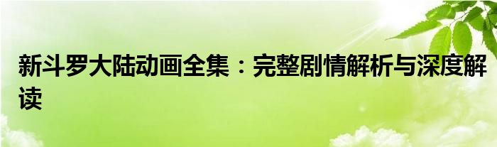 本文将全面解析并深度解读新斗罗大陆动画全集。我们将从剧情、角色设定、世界观构建、动画制作等多个角度进行剖析,带领读者深入了解这部作品的魅力所在。