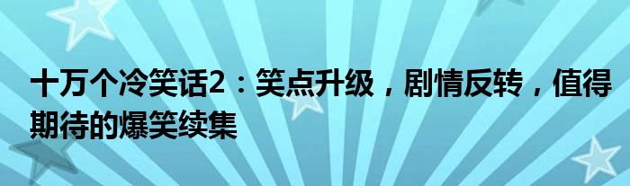 十万个冷笑话2:笑点升级,剧情反转,值得期待的爆笑续集