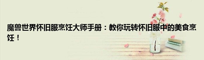 魔兽世界怀旧服烹饪大师手册:教你玩转怀旧服中的美食烹饪!