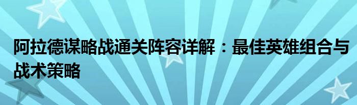 阿拉德谋略战通关阵容详解:最佳英雄组合与战术策略