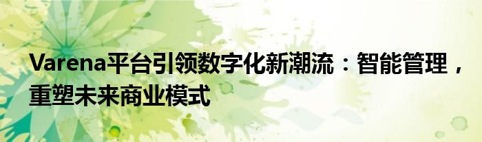 Varena平台引领数字化新潮流:智能管理,重塑未来商业模式