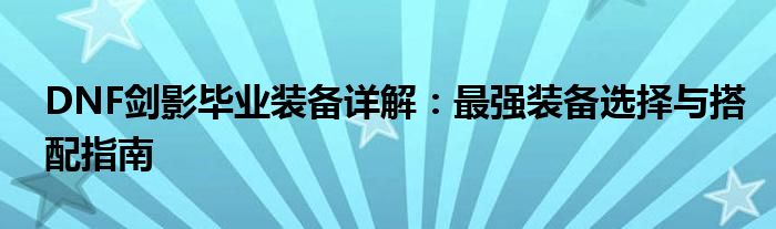 本文为你提供了详细的DNF剑影毕业装备选择与搭配指南,助你轻松打造出顶级剑影角色。希望你在游戏中取得更多的成就和乐趣。