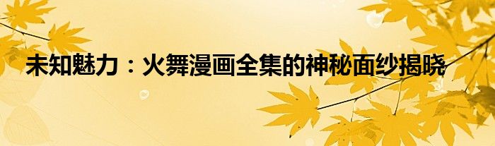 未知魅力:火舞漫画全集的神秘面纱揭晓