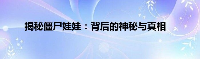 近年来,一个神秘的词汇逐渐在我们的生活中流传开来——“僵尸娃娃”。关于它的传闻层出不穷,引起了广泛的社会关注和热议。那么,“僵尸娃娃”究竟是何方神圣?背后隐藏着怎样的神秘与真相?本文将为您揭开这一神秘现象的面纱。
