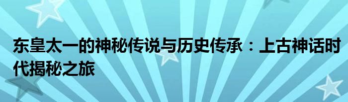 文章标题以东皇太一为中心,汇聚神秘传说与历史传承的精华,探索上古神话时代的奥秘。在这篇文章中,我们将深入探讨东皇太一的身份背景、神话传说以及其在历史传承中的重要地位。