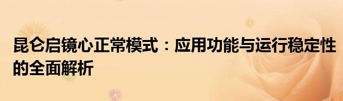 昆仑启镜心正常模式:应用功能与运行稳定性的全面解析