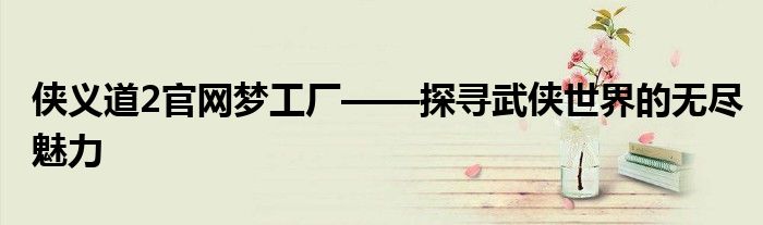 侠义道2官网梦工厂——探寻武侠世界的无尽魅力