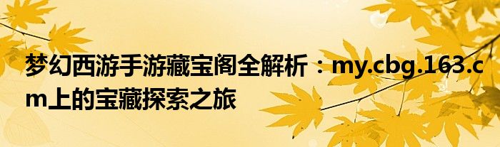 欢迎来到梦幻西游手游的世界!在这里,我们将深入解析梦幻西游手游藏宝阁——my.cbg.163.cm上的宝藏探索之旅。我们将带你走进这个充满神秘和惊喜的虚拟世界,让你了解如何在这个平台上发掘宝藏,满足你的探险欲望。