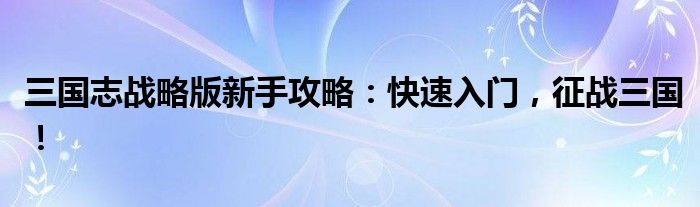《三国志战略版》是一款以三国为背景的策略游戏,玩家将扮演三国时期的名将,通过招募英雄、发展势力、征战四方,最终实现一统三国的梦想。本攻略将带领新手玩家快速了解游戏玩法和技巧。