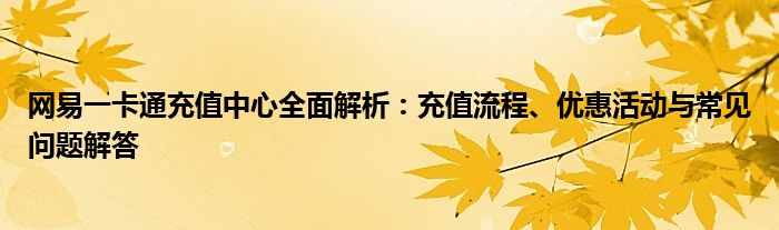 网易一卡通充值中心全面解析:充值流程、优惠活动与常见问题解答