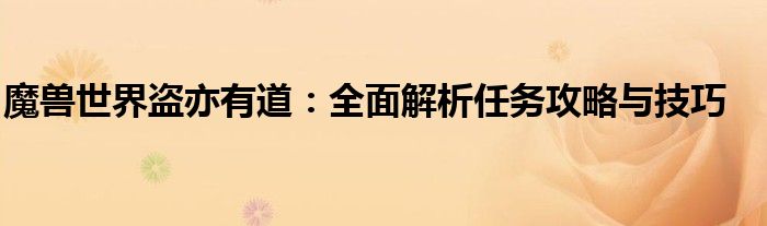 魔兽世界盗亦有道:全面解析任务攻略与技巧