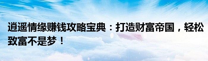 逍遥情缘赚钱攻略宝典:打造财富帝国,轻松致富不是梦!
