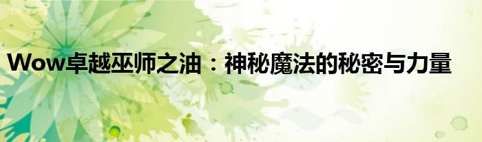 Wow卓越巫师之油:神秘魔法的秘密与力量