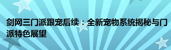 剑网三门派跟宠后续:全新宠物系统揭秘与门派特色展望