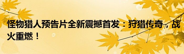 怪物猎人预告片全新震撼首发:狩猎传奇,战火重燃!