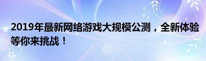 2019年最新网络游戏大规模公测,全新体验等你来挑战!