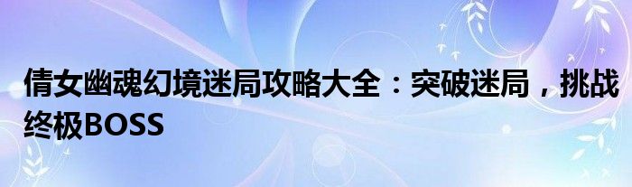 倩女幽魂幻境迷局攻略大全:突破迷局,挑战终极BOSS