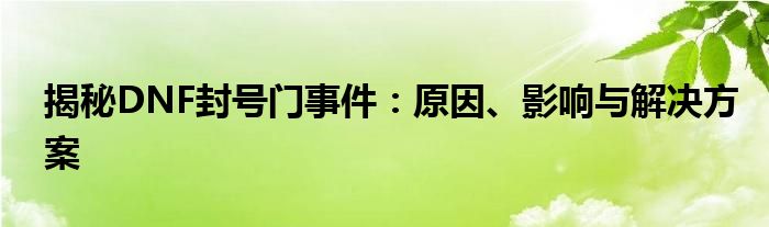 本文将围绕关键词“dnf封号门”展开,深入分析DNF游戏中出现的封号问题,探讨封号的原因和影响,并针对这一问题提出切实可行的解决方案。