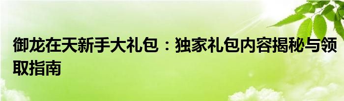 御龙在天新手大礼包:独家礼包内容揭秘与领取指南