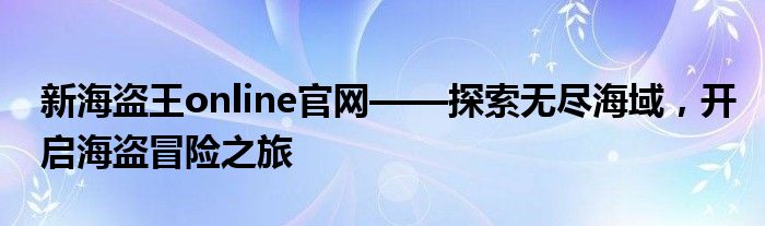 新海盗王online官网——探索无尽海域,开启海盗冒险之旅