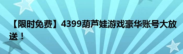 【限时免费】4399葫芦娃游戏豪华账号大放送!