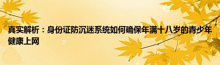 真实解析:身份证防沉迷系统如何确保年满十八岁的青少年健康上网