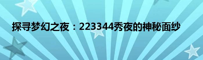 探寻梦幻之夜:223344秀夜的神秘面纱