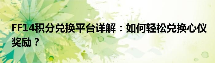 FF14积分兑换平台详解:如何轻松兑换心仪奖励?