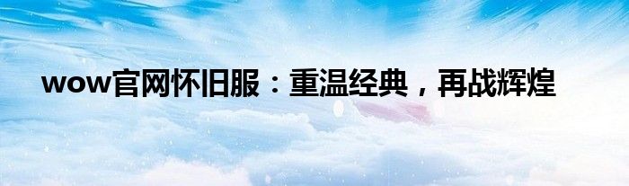 总之,“wow官网怀旧服”为那些热爱魔兽世界的玩家提供了一个重温经典、再战辉煌的平台。在这里,你可以找回曾经的游戏激情,与全球的玩家一起挑战未知领域,共同书写新的传奇。赶快加入我们的行列,一起重温那些美好的游戏时光吧!
