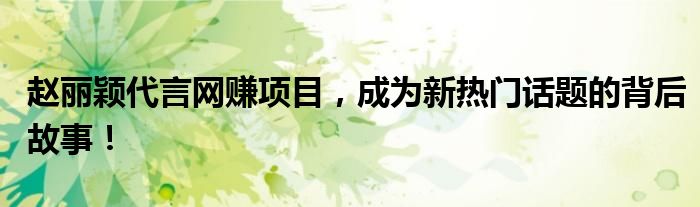 赵丽颖代言网赚项目,成为新热门话题的背后故事!