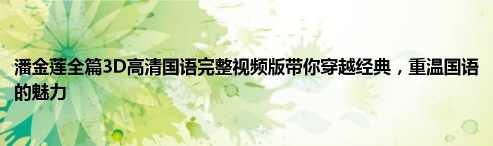 潘金莲全篇3D高清国语完整视频版带你穿越经典,重温国语的魅力