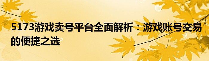 5173游戏卖号平台全面解析:游戏账号交易的便捷之选