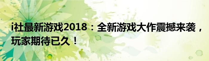 i社最新游戏2018:全新游戏大作震撼来袭,玩家期待已久!