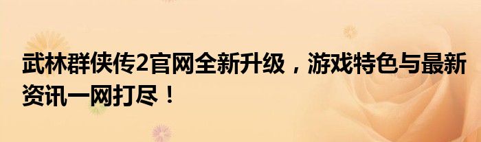 武林群侠传2官网全新升级,游戏特色与最新资讯一网打尽!