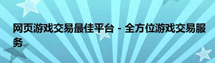 网页游戏交易最佳平台 - 全方位游戏交易服务