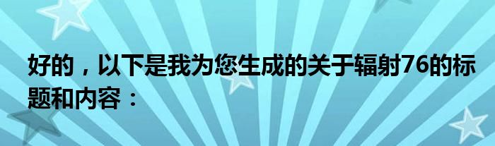 好的,以下是我为您生成的关于辐射76的标题和内容: