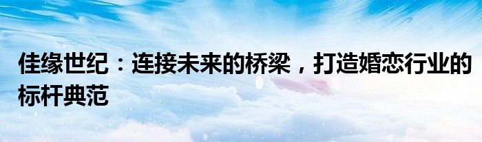 佳缘世纪:连接未来的桥梁,打造婚恋行业的标杆典范