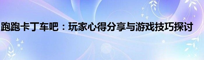 跑跑卡丁车吧:玩家心得分享与游戏技巧探讨