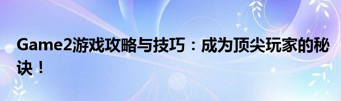 Game2游戏攻略与技巧:成为顶尖玩家的秘诀!