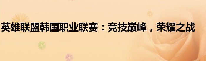 英雄联盟韩国职业联赛:竞技巅峰,荣耀之战