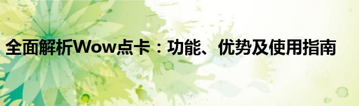 全面解析Wow点卡:功能、优势及使用指南