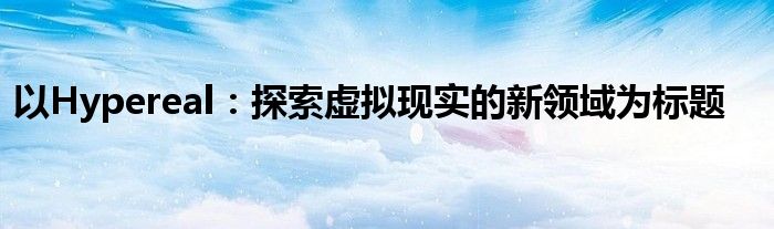 以Hypereal:探索虚拟现实的新领域为标题