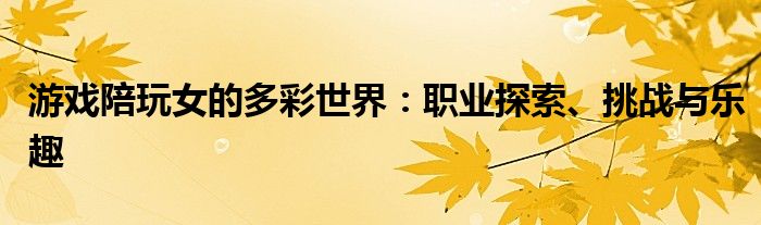 游戏陪玩女的多彩世界:职业探索、挑战与乐趣