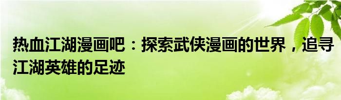 热血江湖漫画吧:探索武侠漫画的世界,追寻江湖英雄的足迹