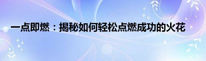 “一点即燃”意味着在关键时刻,迅速点燃内心的激情和动力,以积极的态度面对挑战。成功往往源自于那一瞬间的坚持和努力,只要我们把握住那一刹那的机会,便能点燃成功的火花。